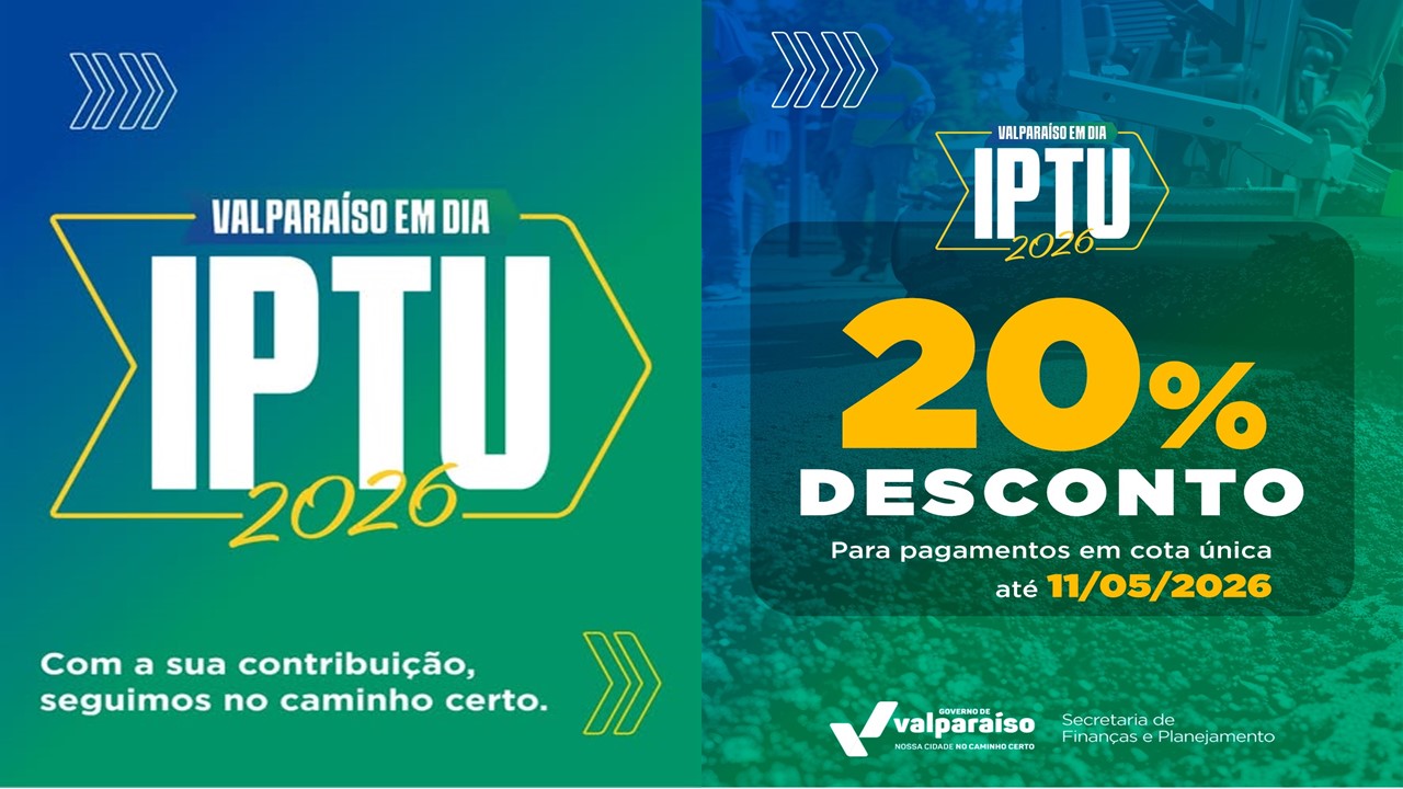Desconto de até 20% no IPTU 2026: Emita seu boleto no site da Prefeitura de Valparaíso